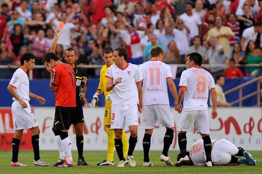 Con el partido entregado al Valencia, el Sevilla defendió muy bien su inferioridad numérica. Además, Spahic, provocó la expulsión de Aduriz de manera rastrera todo hay que decirlo, el otro fútbol que le llaman. El bosnio pisa Aduriz, éste le responde con la misma moneda y el árbitro le expulsa.